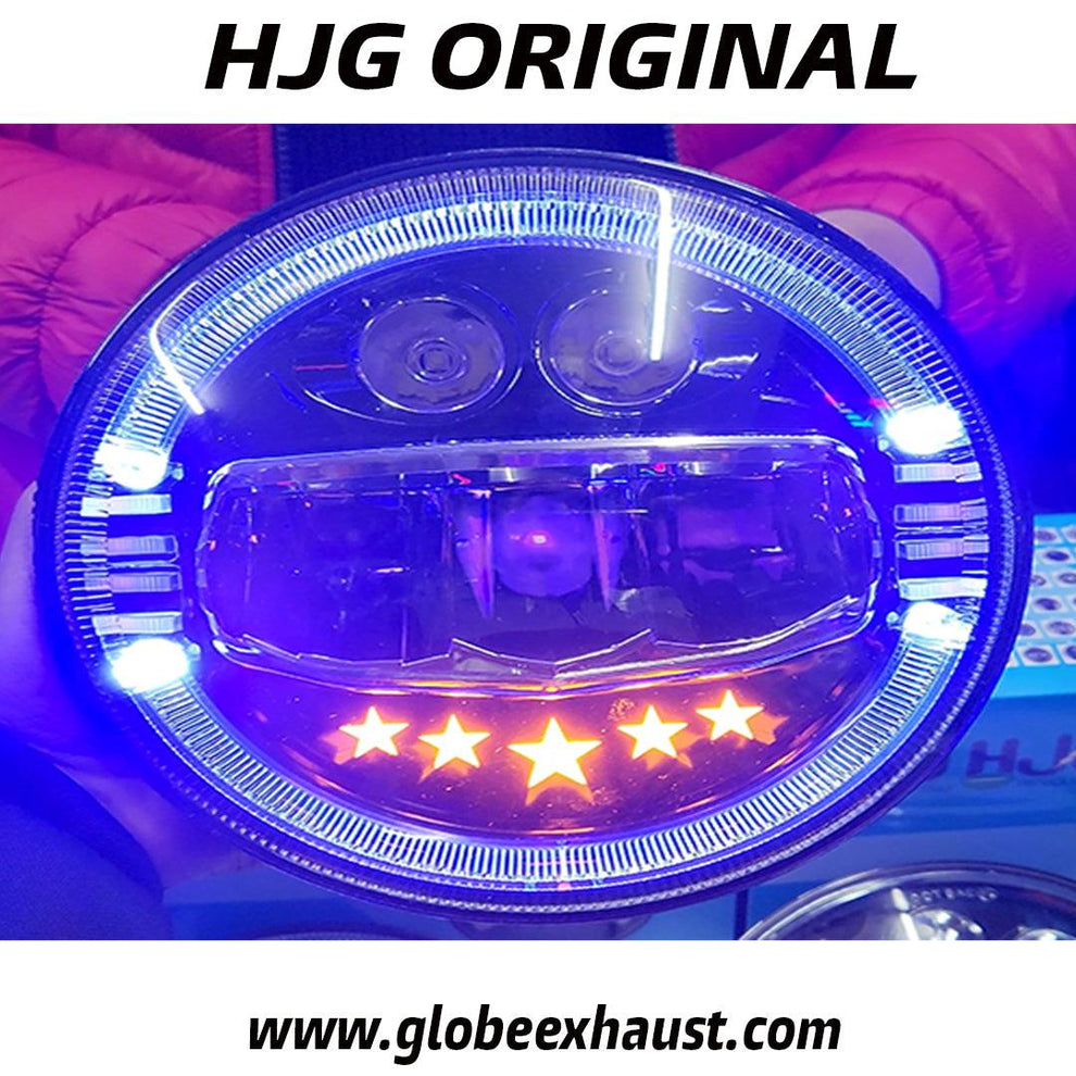 Globe Moto HJG 5 Star Headlight With Blue & White Drl For All Royal Enfield Models